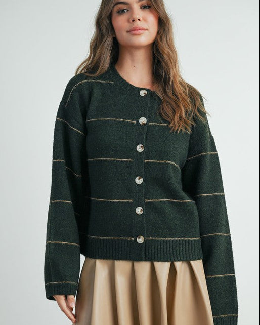 Christmas Tree Chevron Stripe Ribbed Trim Sweater