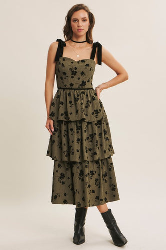 Floral Ruffle Midi Dress (Multiple Colors Available)