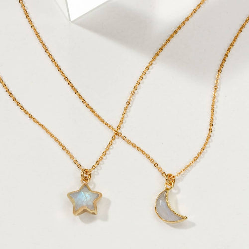 To the Moon and Back Best Friend Necklace Set- Moonstone