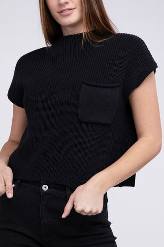 Online Exclusive Mock Neck Short Sleeve Cropped Sweater
