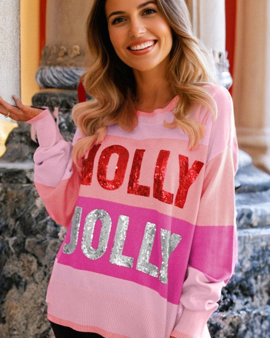 Elevate your holiday wardrobe with this sweater. Featuring sparkling lettering, it brings festive charm and a bold visual statement through its vibrant design. Crafted from soft knit fabric, it offers cozy warmth and flexible comfort, while the classic neckline ensures a timeless silhouette perfect for all your seasonal celebrations.
