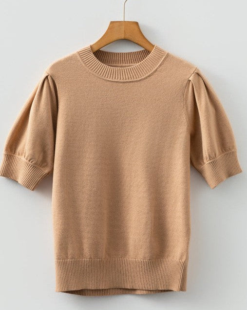 Meet Jasmine Short Puff Sleeve Sweater—a flattering, easy-to-wear piece you'll reach for again and again. This short sleeve sweater top is perfect for warm seasons. Its solid color and concise style makes it versatile to match any bottoms.