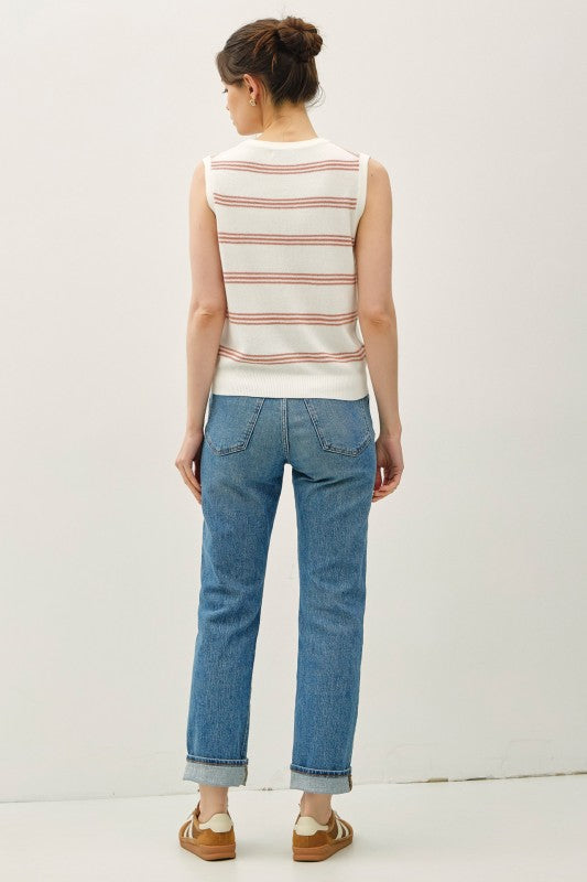 * SWEATER TANK * SLEEVELESS * ROUND NECK * TRIPLE STRIPED * RIBBED HEM, NECKLINE, ENDS * BASIC, EVERYDAY--FITTED STYLE/ TRUE TO SIZE