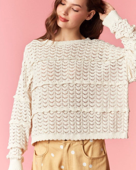 Scallop Edge Detailed Round Neck SweaterThis beautiful delicate year round sweater will elevate any look.Slightly oversized style Material: 100% Polyester