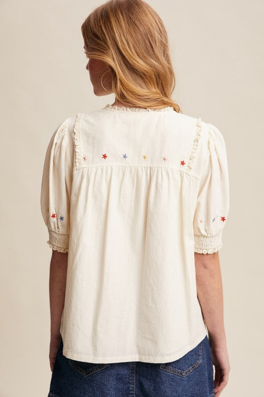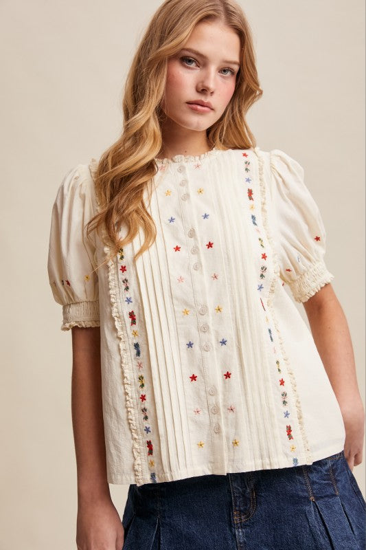 Charming, artisan-inspired, and effortlessly wearable, this embroidered top